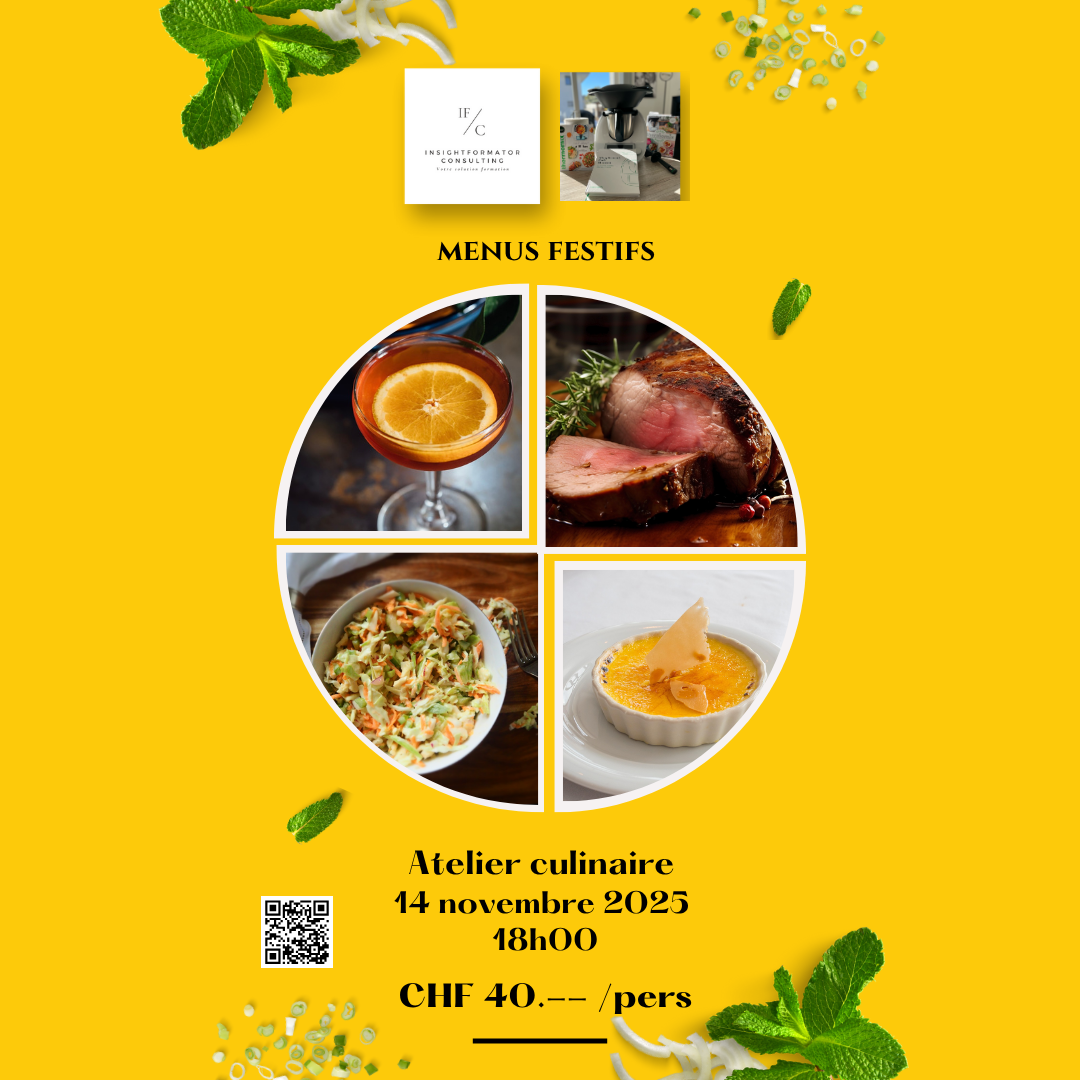 Chez Insightformator Consulting, nous vous proposons un moment gourmand, convivial et pédagogique, où l’on cuisine avec plaisir, dans une ambiance détendue et bienveillante.